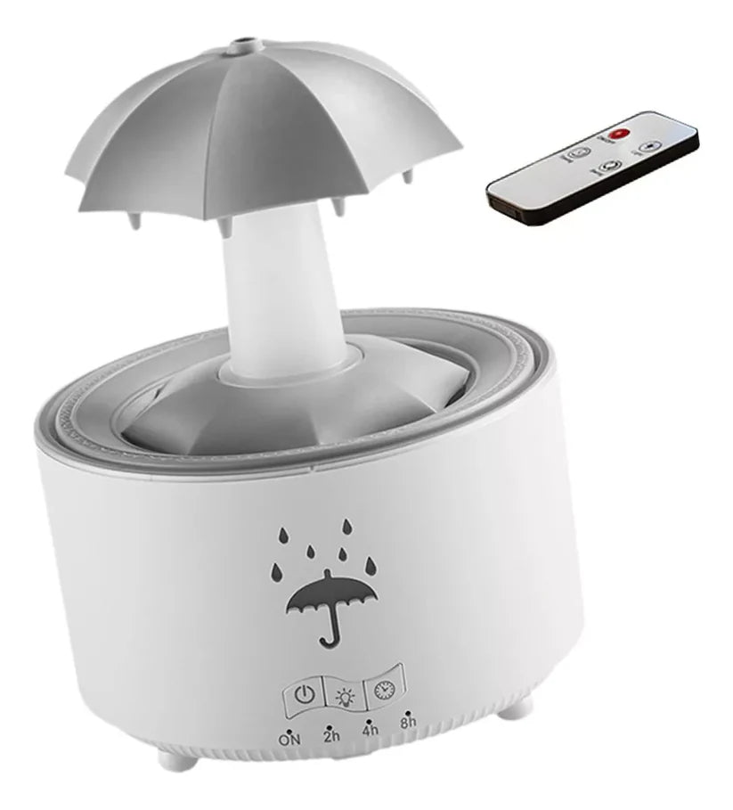 Transforma el ambiente de tu hogar con este humidificador giratorio con forma de paraguas. Combina aromaterapia, iluminación ambiental y relajantes sonidos de lluvia, ideal para quienes buscan relajarse, dormir mejor o simplemente añadir un toque elegante y funcional a su espacio.